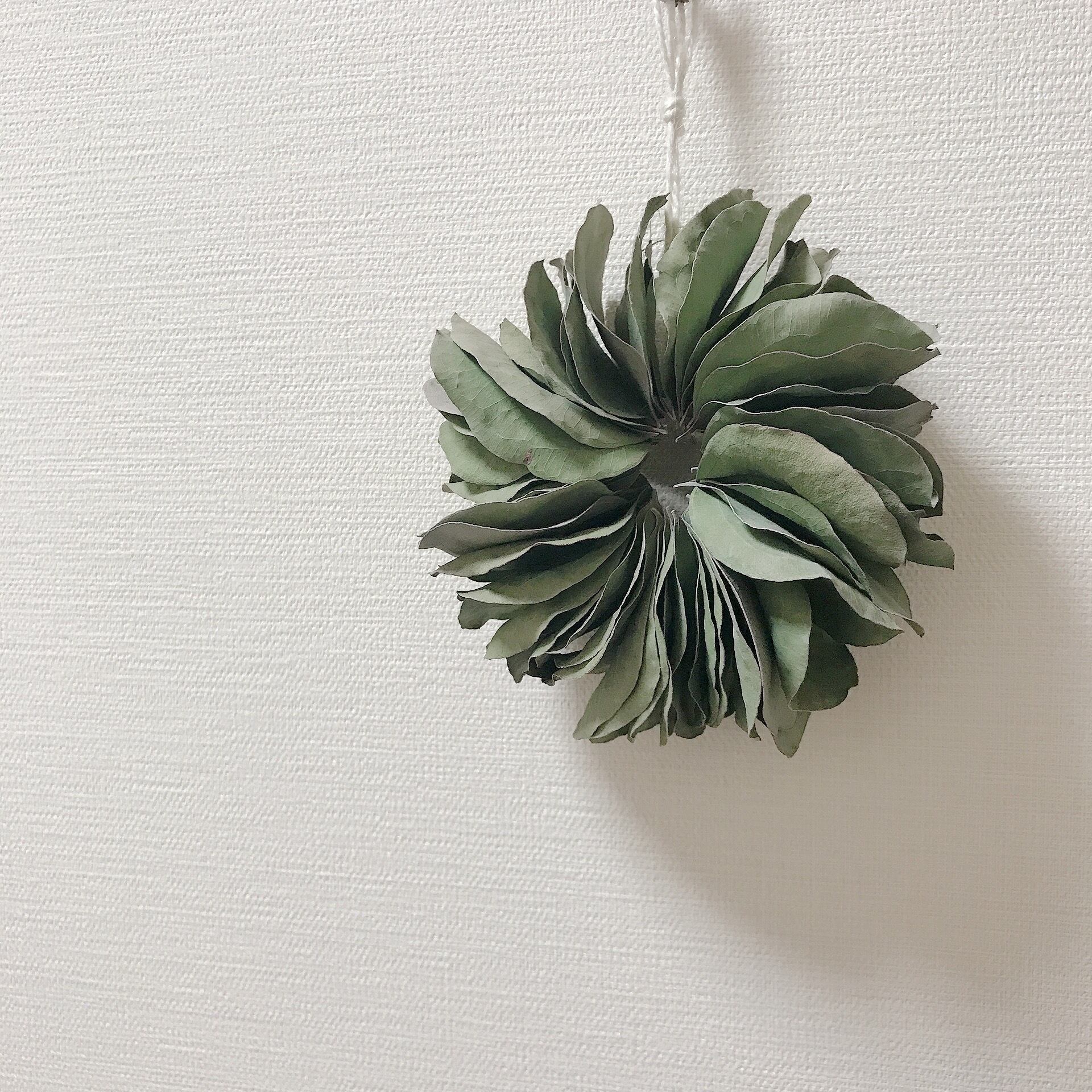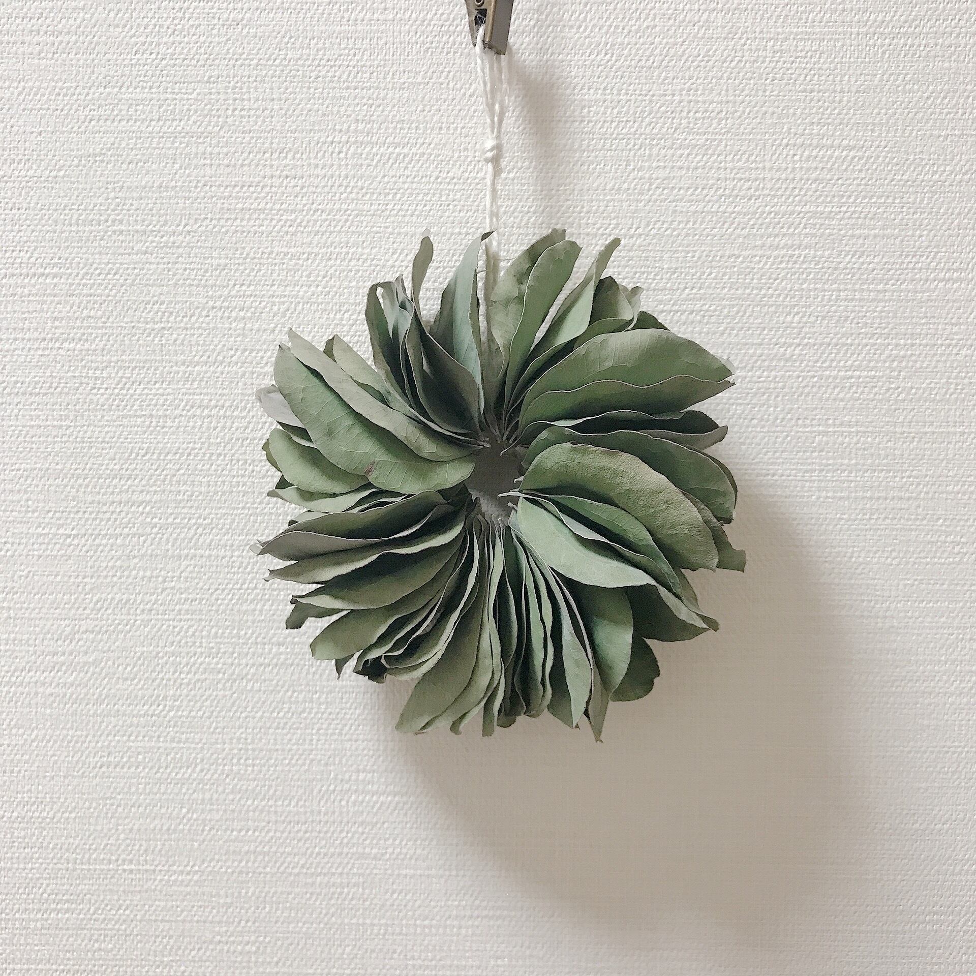 ユーカリポポラスの葉をたくさん連ねて丸くした、シンプルだけど可愛らしいユーカリのリーフリースです。